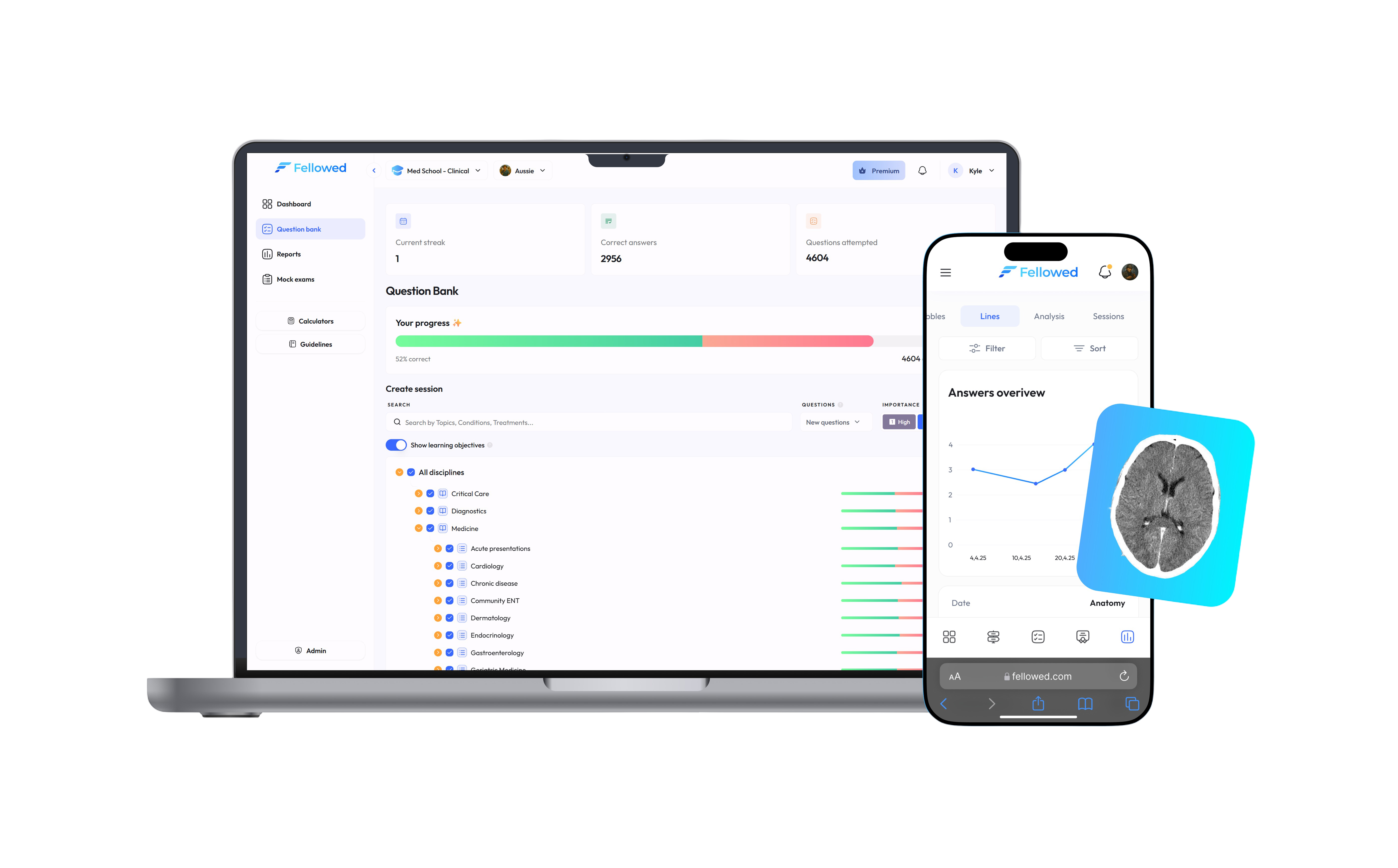 It's not useful to be told to work on your “Upper arm anatomy” when all you really need to study is the brachial plexus. Fellowed identifies knowledge gaps at the learning objective level so you can be targeted with your studies AND your knowledge gap related anxieties.